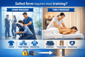 Are clients in these countries experiencing exploitation or harm? Is chair massage being used as a front for illegal activity? No. The structural features of chair massage—clothed, public, limited body areas—create inherent protection regardless of training requirements.